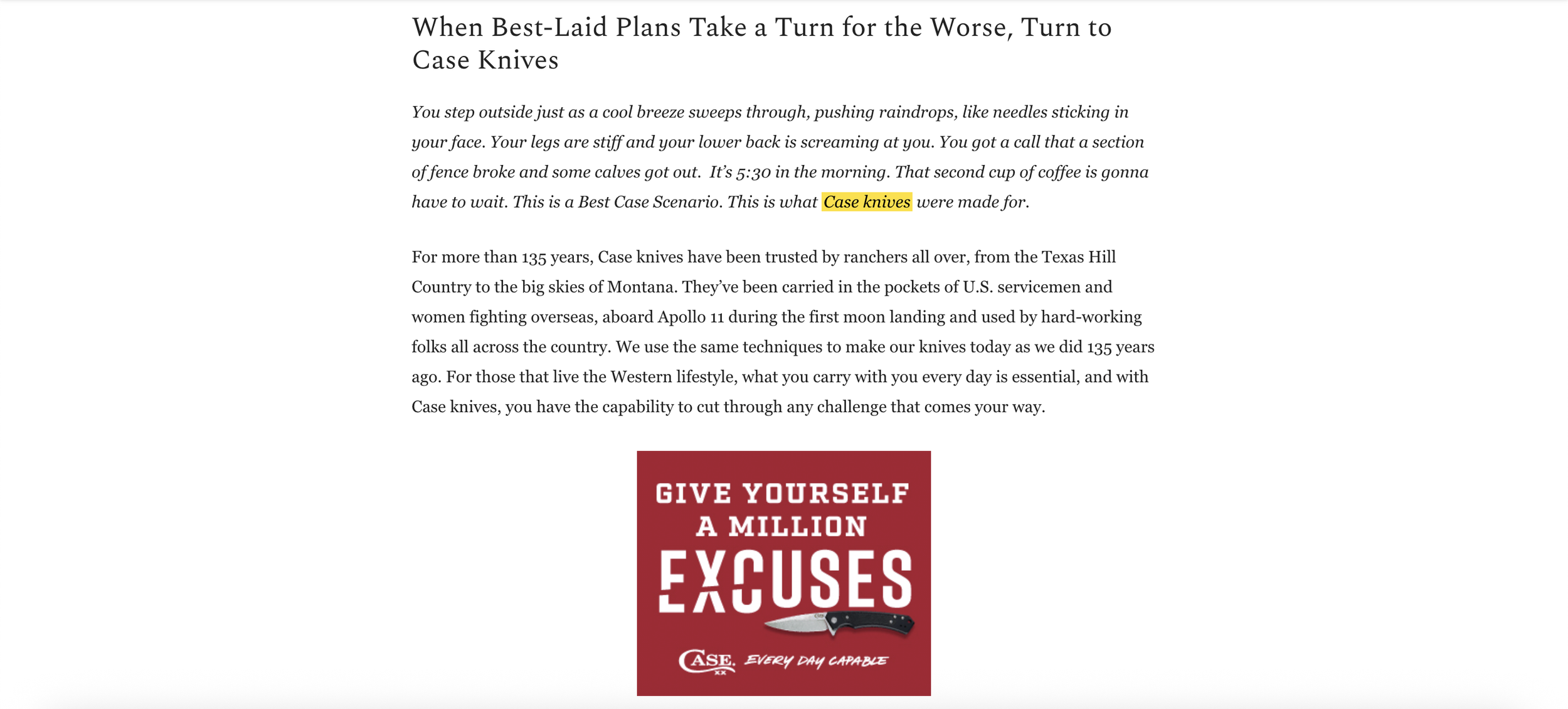 Write a sponsored article for the Western Horseman Magazine introducing readers to the Case Knives’ brand as well as calling out specific products.